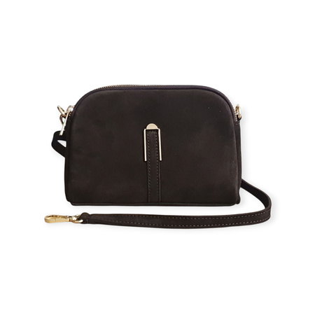 Stylowa i funkcjonalna torebka skórzana damska wykonana w całości z wysokiej jakości naturalnej skóry zamszowej. Głęboki, czekoladowo-brązowy kolor w połączeniu ze złotymi elementami dodaje jej klasy i ponadczasowej elegancji. To idealna mała torebka na ramię lub crossbody, która sprawdzi się na co dzień i do bardziej eleganckich stylizacji.