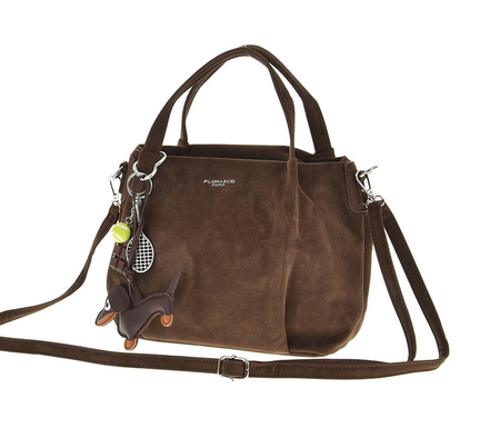 Flora&CO zamszowa czekoladowa torebka z brelokiem