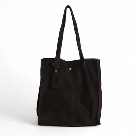 Stylowa torebka damska typu shopper wykonana z wysokiej jakości naturalnej skóry zamszowej w eleganckim, czekoladowym kolorze. Minimalistyczny fason i staranne wykończenie sprawiają, że to model idealny zarówno na co dzień, jak i do pracy.